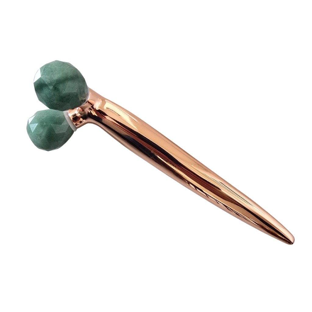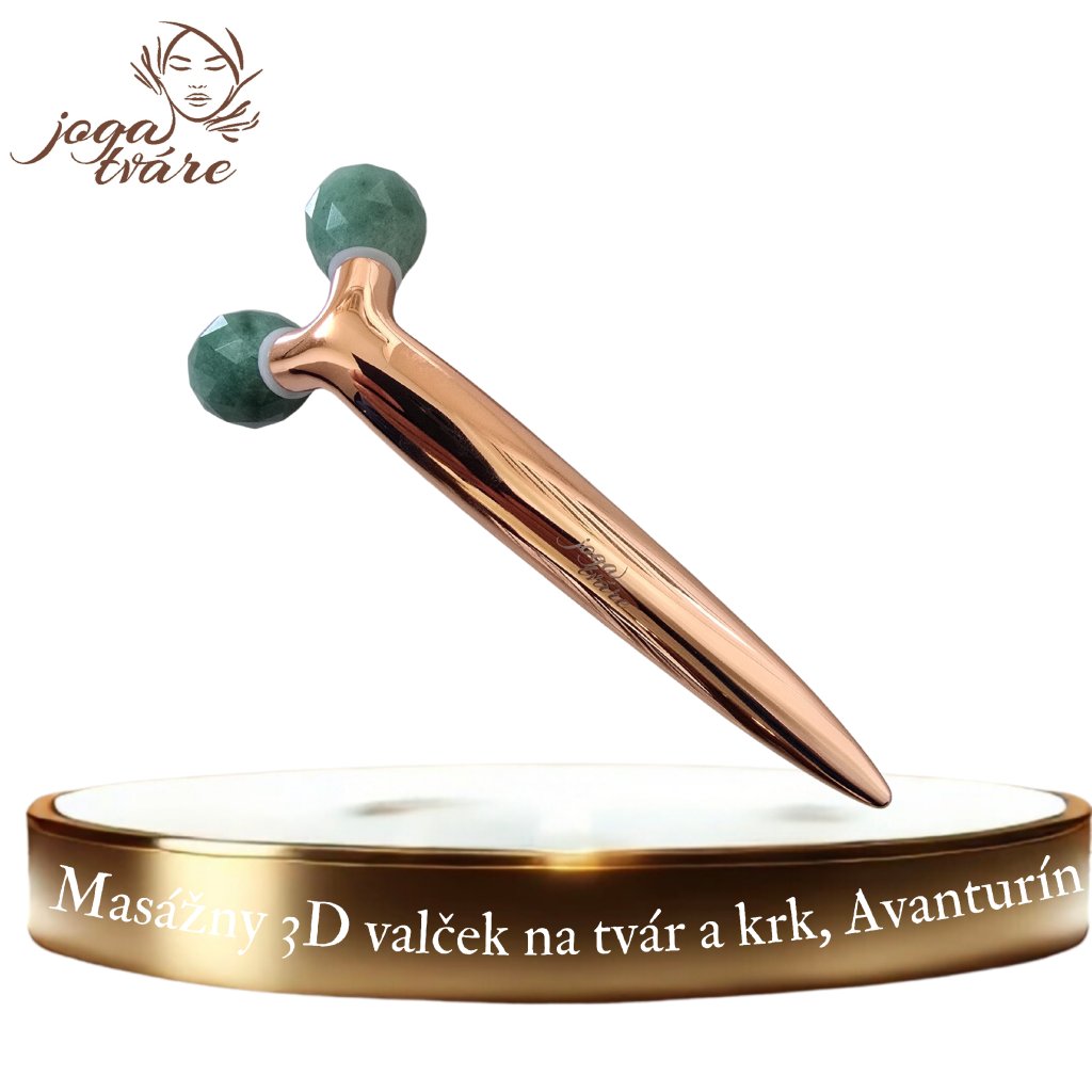 Masážny 3 D valček z prírodného minerálu Avanturín, je navrhnutý tak, aby sa prispôsobil prirodzeným ryhám a kontúram vašej tváre. Tvarované guličky z Avanturínu, ktoré sa otáčajú o 360 ° intenzívnejšie masírujú, zachytávajú tkanivo, najmä kritické oblasti na tvári. Vďaka jedinečnému tvaru písmena Y je tento valček taktiež vynikajúcim pomocníkom pre oblasť čeľustí, kde pomáha bojovať s účinkami gravitácie, spevňuje pokožku a zvyšuje jej pružnosť.