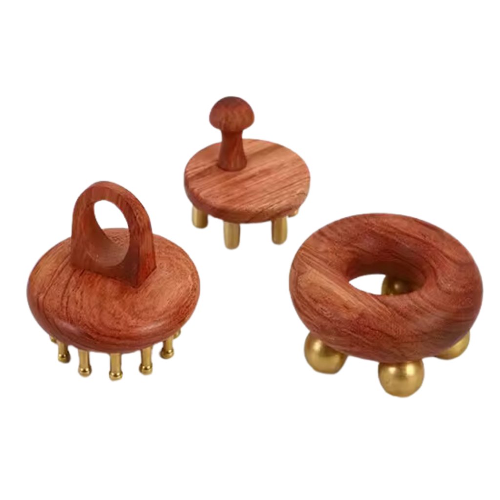 Ručne vyrobený drevený krúžok sa väčšinou používa na masáž hlavy a celého tela. Okrúhle guličky so širšou oblasťou pomáhajú docieliť stimuláciu masírovanej oblasti pod nízkym tlakom. Podporuje krvný obeh a lymfatický systém, zmierňuje únavu a podporuje prekrvenie hlavy.
