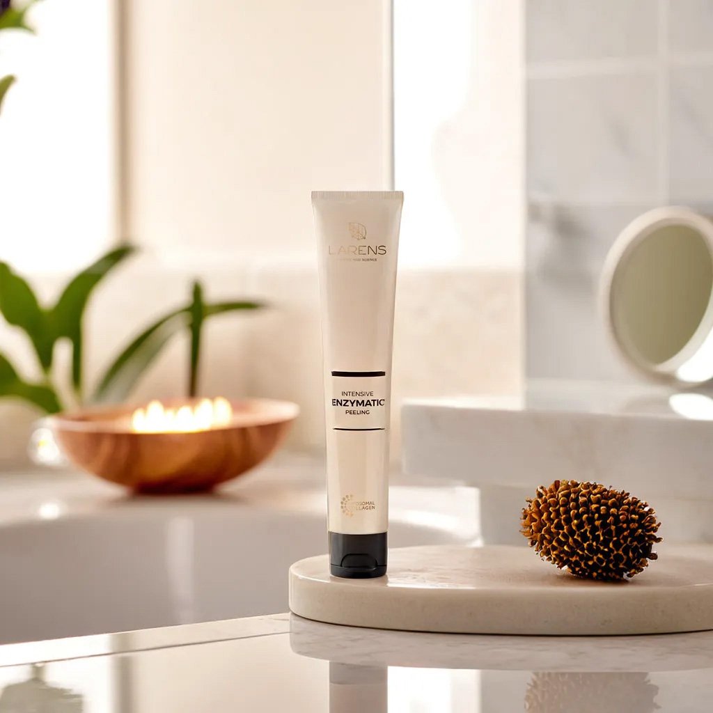 Enzymatic Peeling - Enzymatický peeling na tvár založený na sile troch rastlinných enzýmov: papaínu, ficínu a bromelaínu. Vysoko koncentrované zložky so synergickým účinkom jemne, ale účinne zlupujú odumretú pokožku bez trenia spojeného s rizikom podráždenia. Pri pravidelnom používaní pôsobí komplexne: vyhladzuje, zlepšuje prekrvenie pokožky a pripravuje ju na ďalšie ošetrenie, vyrovnáva farebný tón pleti, hydratuje a zmierňuje podráždenie.